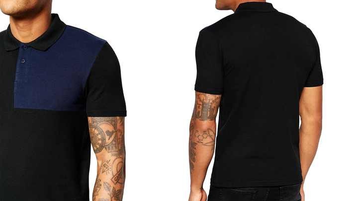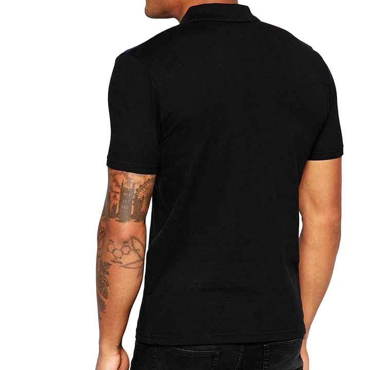 Luxury skinny fit contrast shoulder panel breathable cotton essential muscle pique polo shirt for mens clothing in black color